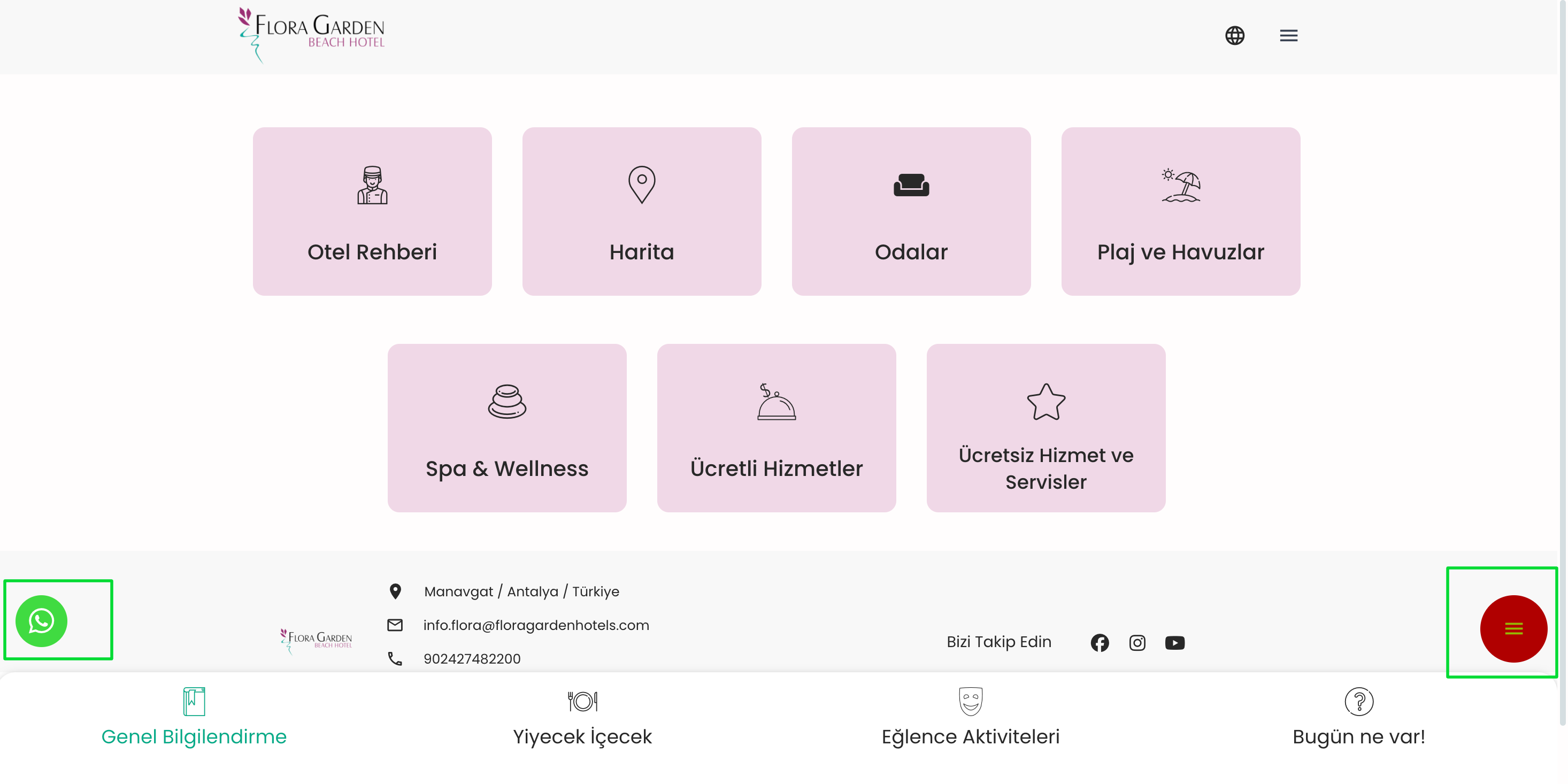 Oluşturulan sabit buton ve açılabilir buton sayfada istenilen yerde konumunu almış hale gelir. Sol kısımda olan whatsapp butonu sabit, sağ kısımdaki buton ise açılabilir butondur.