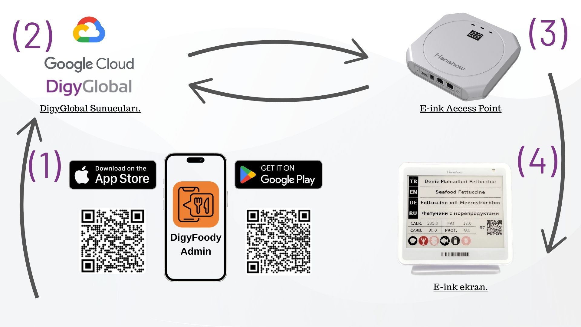 • DigyFoody E-ink versiyonunda acces point ve e-inkler kurulu şekilde tarafınıza teslim edilecektir.